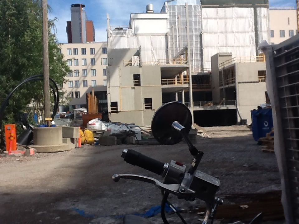 Edit. Mun pitää lähteä mamman puudelin kanssa lenkille. Jos toi mun pullokaappi kelpas niin sitten ettikääs rakennustelineet samaan kuvaan mopon kanssa.