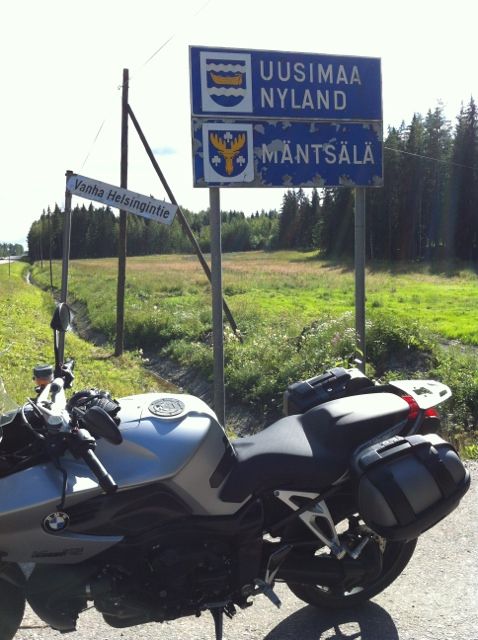 Sitten mopotin ja jonkin läänin rajakyltti jossa on läänin nimi luettavissa.