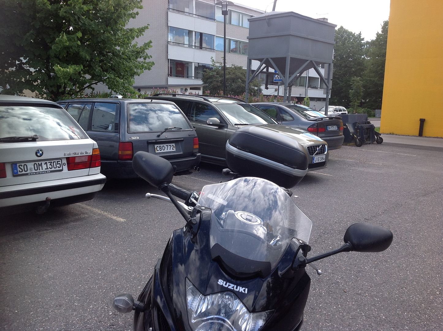 Seuraavaksi pyörä ja väärin pysäköity auto. Mitä härskimmin jätetty sen parempi.