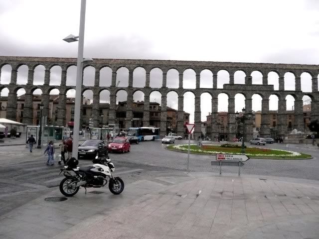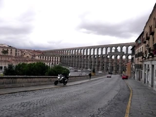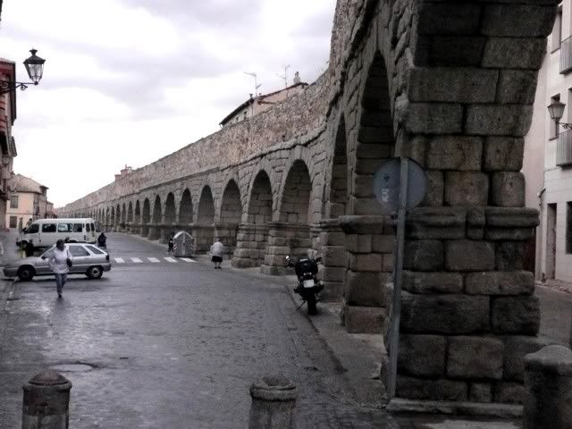 Segoviassa on Unescon maailmanperintölistalla oleva roomalaisten aikainen melkein 2000 vuotta vanha akvedukti. Olen aina halunnut nähdä sen ja nyt otin härkää sarvesta, vaikka olikin perillä kosteat kelit. Oli se vaikuttava näky: