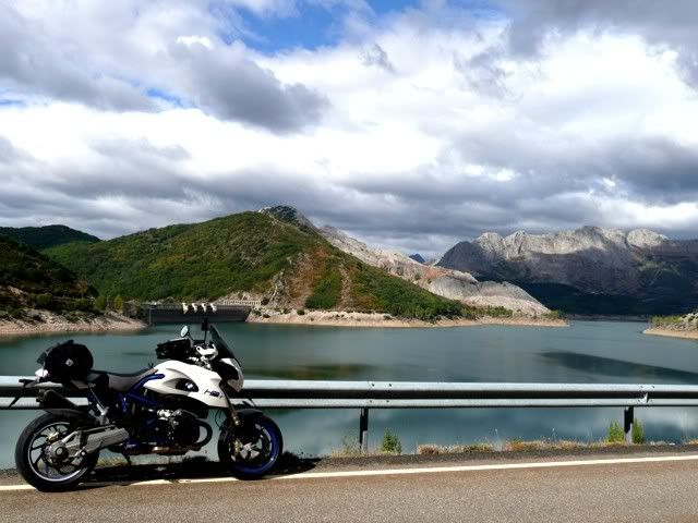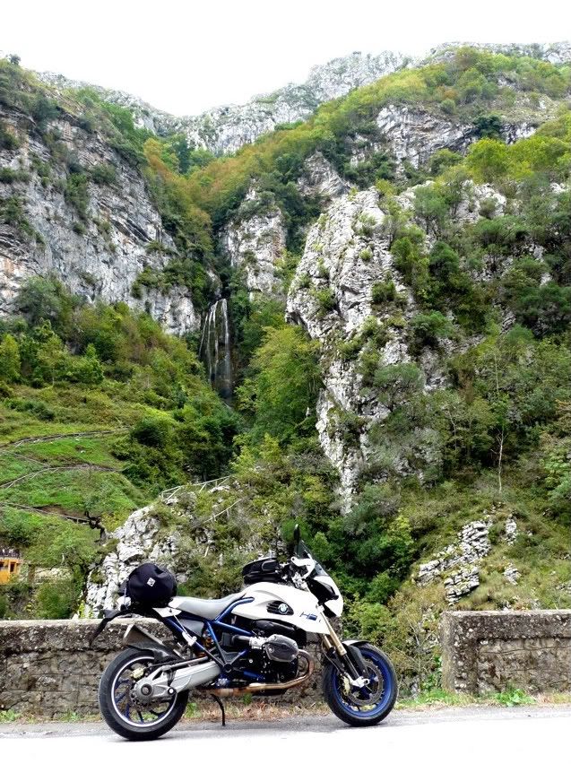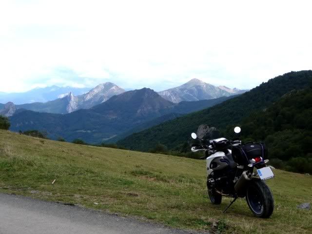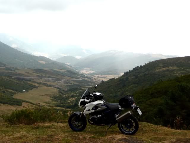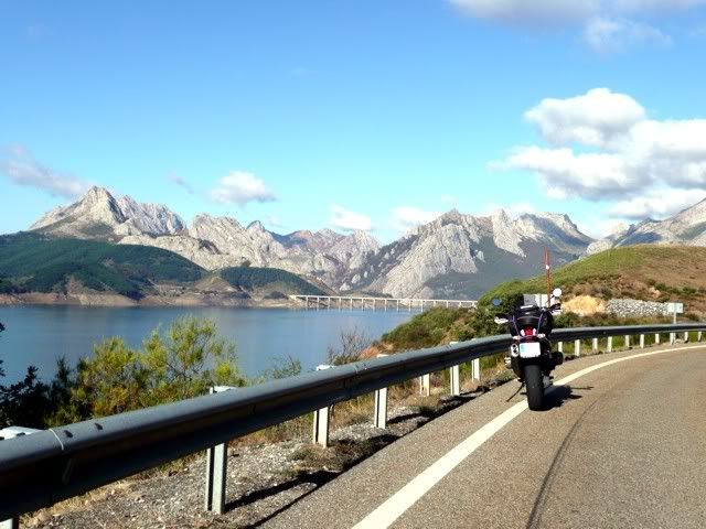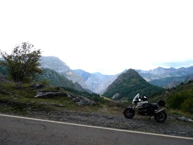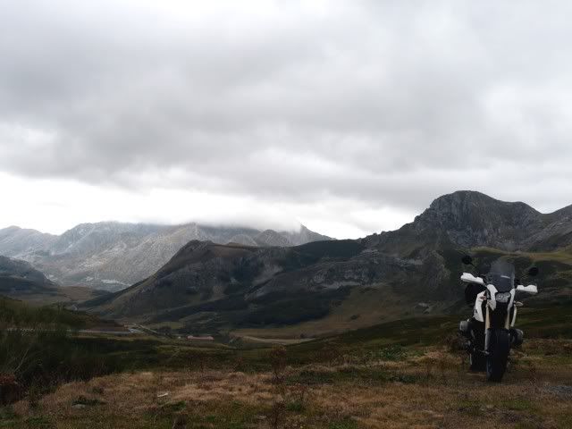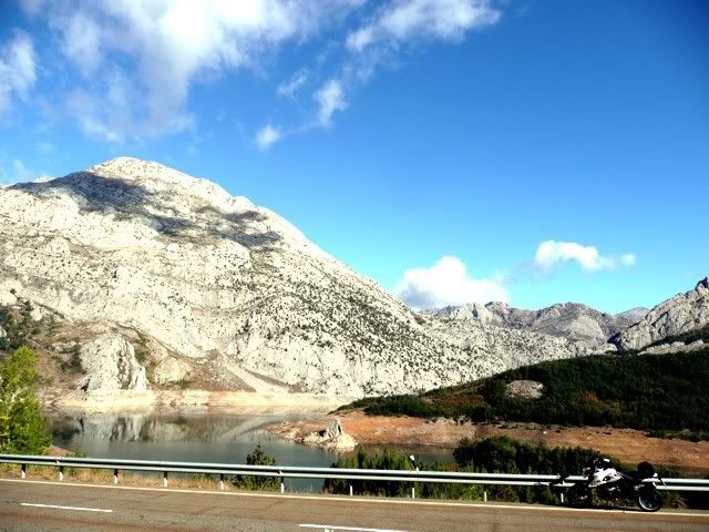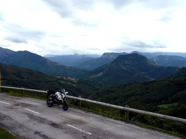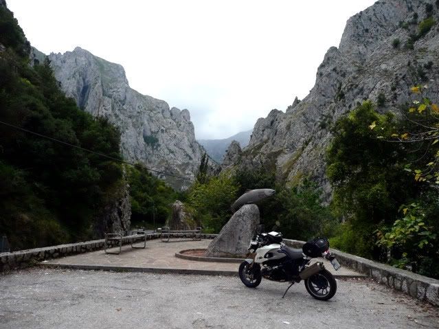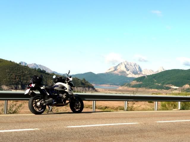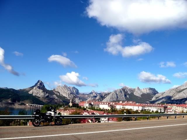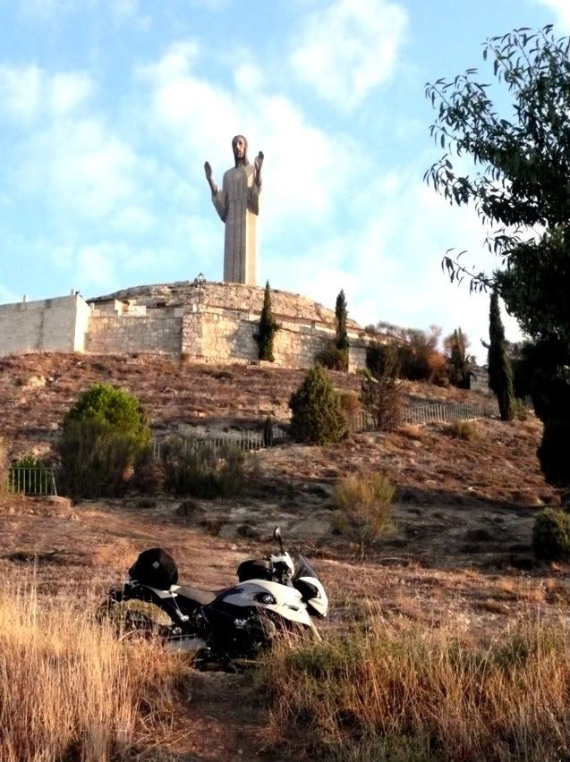 Espanjan pohjoisosassa on vuoristo ja luonnospuisto Picos de Europa. Kävin siellä kääntymässä. On kyllä hino paikka, ei ole pajoa liikennettä, tiet ovat upeita mutkapätkiä, eikä ole vääriä nopeusrajoituksia. Sääennuste lupasi sateita pohjoiseen, mutta lähdin silti. Lauantaiaamuna heräsin Palenciasta. Mäen päällä kökötti patsas ja kävin hakemassa siunauksen reissulle: