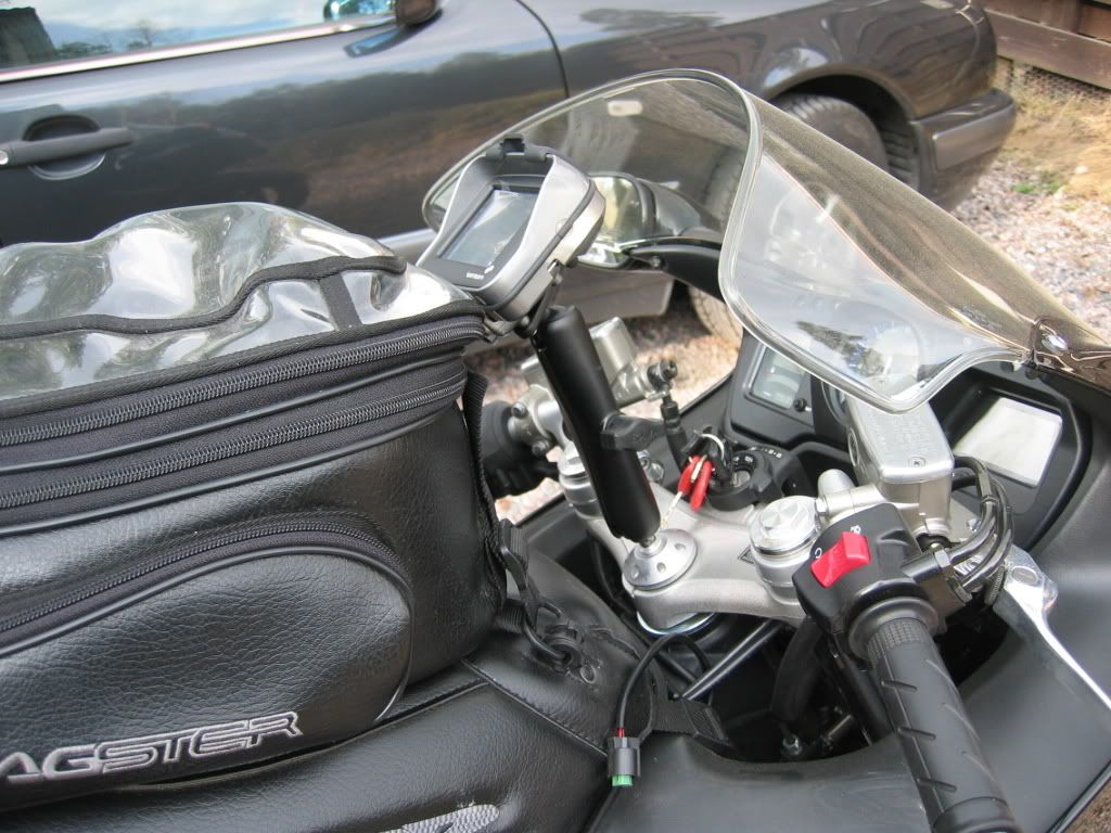 Ja tankkilaukun kanssa taasen pitää olla tuo pitempi 5,25 ” varsi jotta Bagsteri mahtuu olemaan paikoillaan ja ruutu näkyy. *