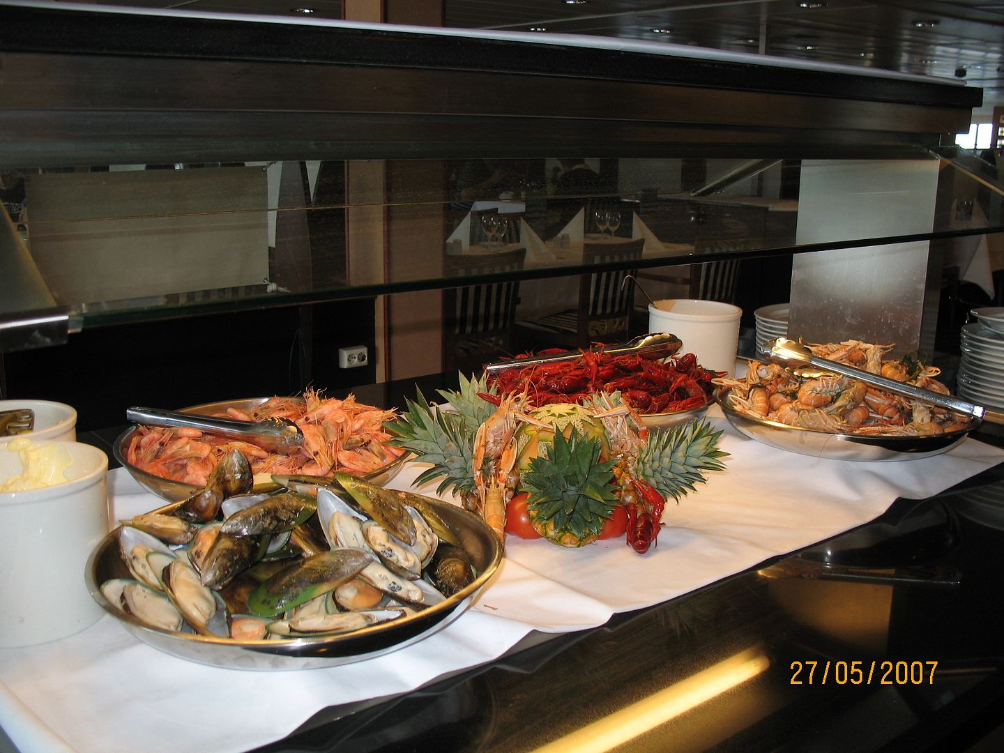 Aamu pohjanmerellä koitti kauniina ja lämpimänä. Laivan aamiaispöytä oli ruhtinaallinen. Ainoastaan karjalanpiirakat puuttuivat. Varustamolle on reklamoitu asiasta.