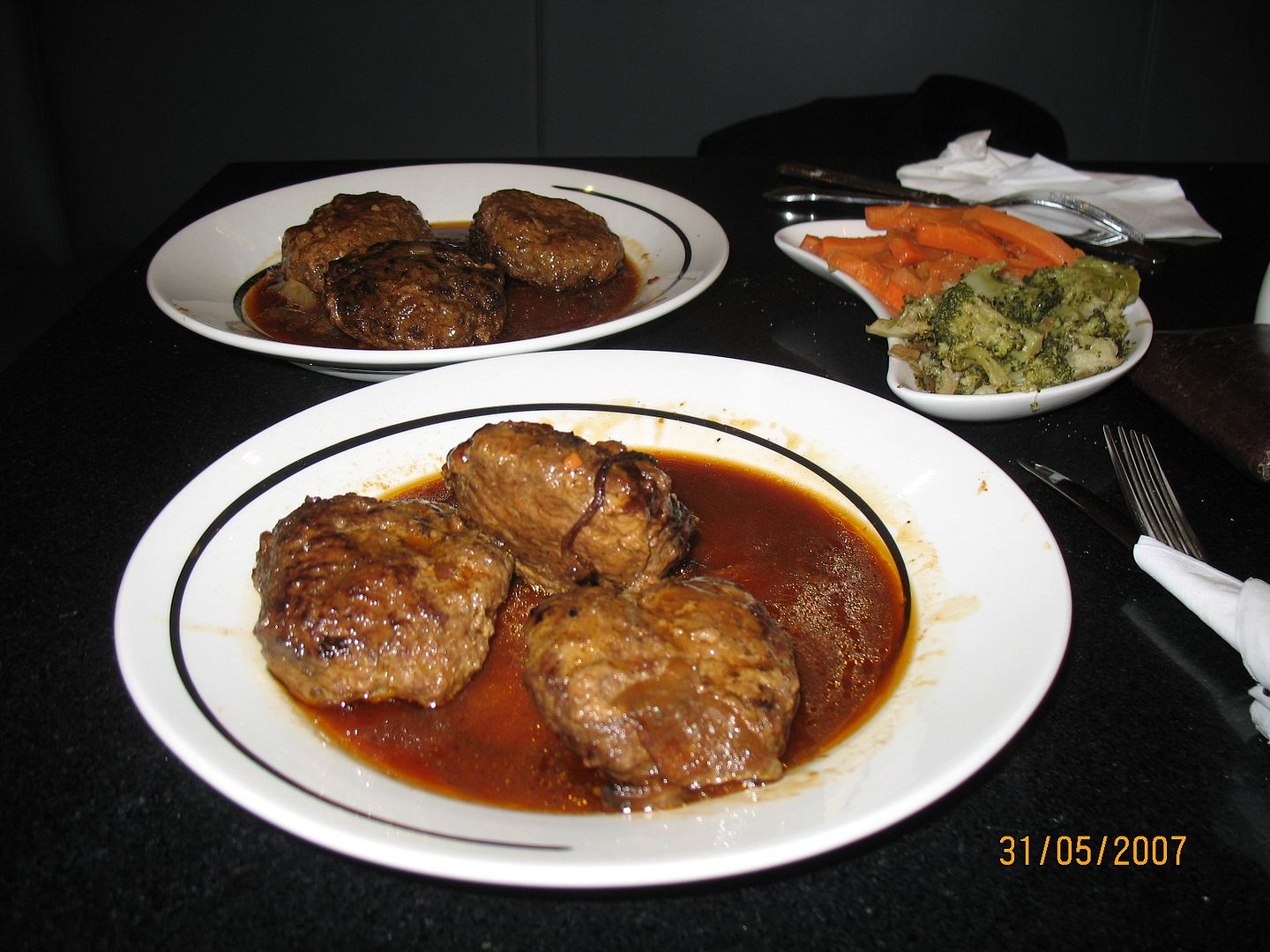 Donegalissa löysimme Atlannin valtameren rannalta hotellin joka veloitti huoneesta 109 €. Huone oli pitkien kapeiden käytävien loppupäässä joten voi arvata janottiko, kun pääsimme laukkuinemme ja ajovaatteiden kanssa perille. Vaivan korvasi kyllä hieno merimaisema. Onkohan muilla motoristeilla kokemusta samasta asiasta? Minusta kyllä tuntuu että meidät pistetään vähän piiloon hotellin muilta asukkailta. *Muutaman tutustumisoluen jälkeen palasimme hotelliin koska se mainosti tarjoavansa irlantilaista musiikkia. *Perkele, yhden miehen orkesteri soitteli Johnny Cash tyyppistä musiikkia josta sinänsä pidän, mutta en välttämättä Irlannissa. Siirryimme hotellin cafeteriaan ja Cashin musiikin innoittamina tilasimme hampurilaiset. Yllätys oli jälleen suuri. Saimme kumpikin 3 kpl Tony Halmeen nyrkinkokoista jauhelihapalleroa jossakin liemessä. Lisukkeena oli vetisiä parsakaaleja ja porkkanoita.