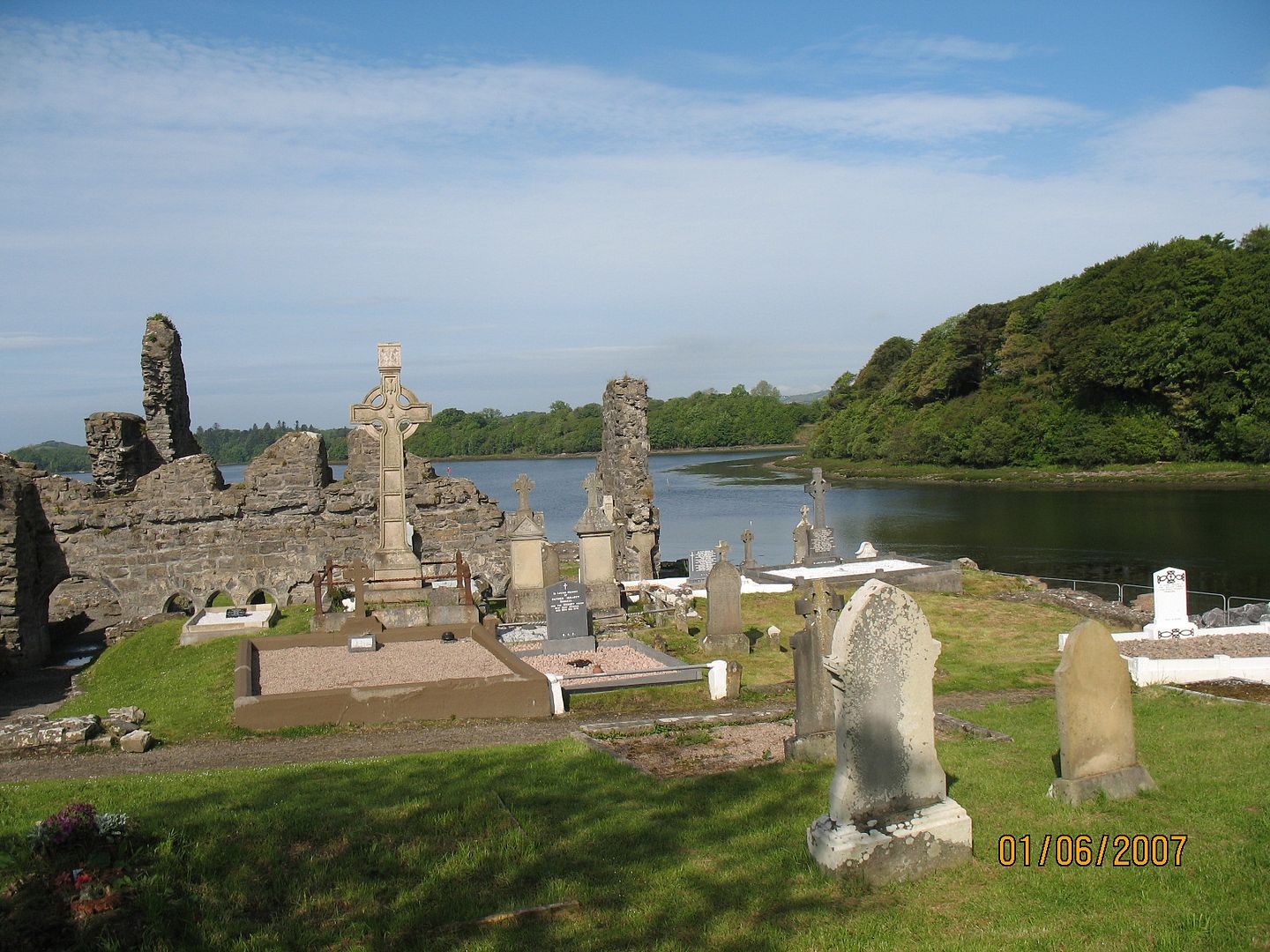 Pysähdyimme Castlefinn nimisessä kylässä tankkaamaan ja ihmettelin miksi bensiini on niin kallista. Kesti hetken aikaa kunnes sytytti. Hinta olikin euroissa. Olimme ylittäneet maan rajan sitä huomaamatta. Ei minkäänlaista porttia tai koppalakkimiestä missään. Tämä oli hieno asia koska jos rajaa ei tarvita, ovat irkut oppineet tulemaan keskenään toimeen.