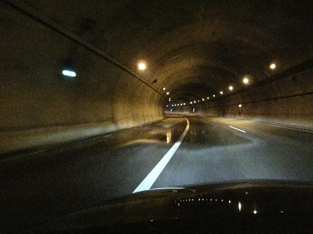 Marbellan bemariliike on tuosta tunnelista kilsa eteeenpäin. Kävin eilen siellä ja räppäsin kuvan tunnelissa. Huoltohemmo kertoi, että tulla tunnelissa on joku lähde ja siellä on aina vettä. Sulkuviivan vasemmalla puolella ei saa ajaa. Tuon kaista oikeassa laidassa on vähän kuivempaa ja sinne suhailin:
