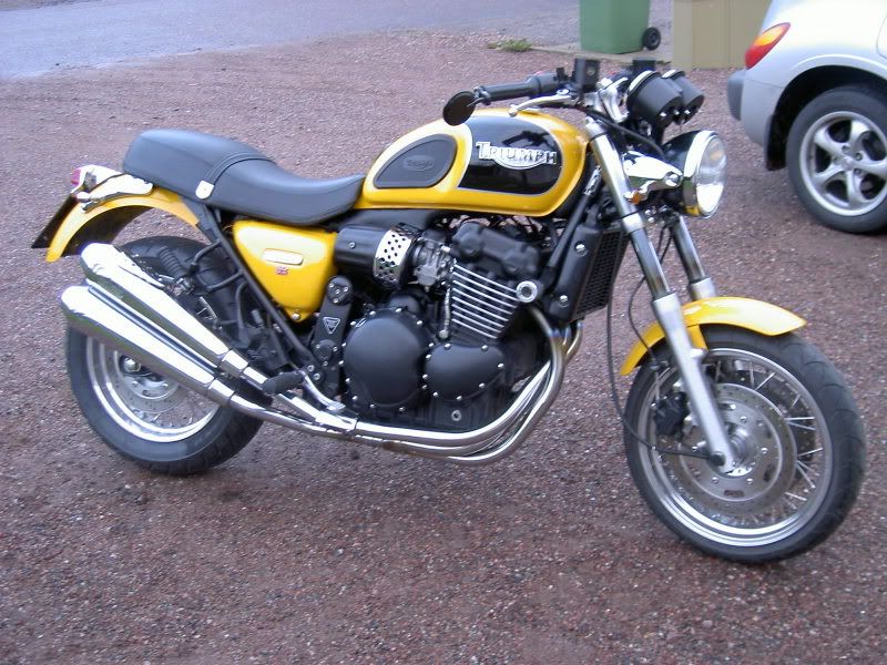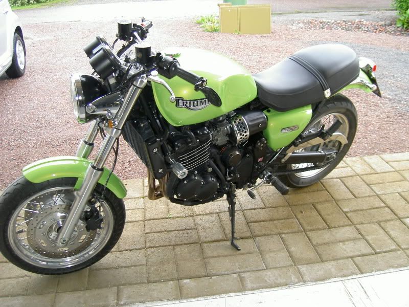 Tämä ei kyllä erityisesti koske otsikon mukaista pyörää vaan yleensä Triumphin kolmosia. Erittäin, miten sen nyt sanois, helppokäyttöinen/-ajettava - väännökäs ja laajalla kierrosalueella tasaisesti möyryävä kone. Tämä sama asia on sitten havaittavissa vieläkin selvempänä 955i ja 1050 moottoreissa.