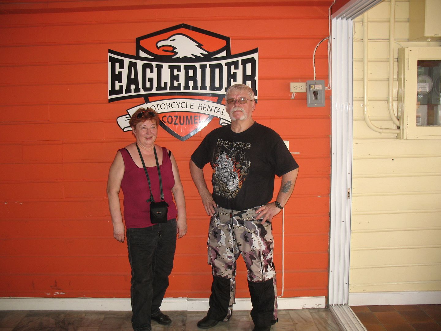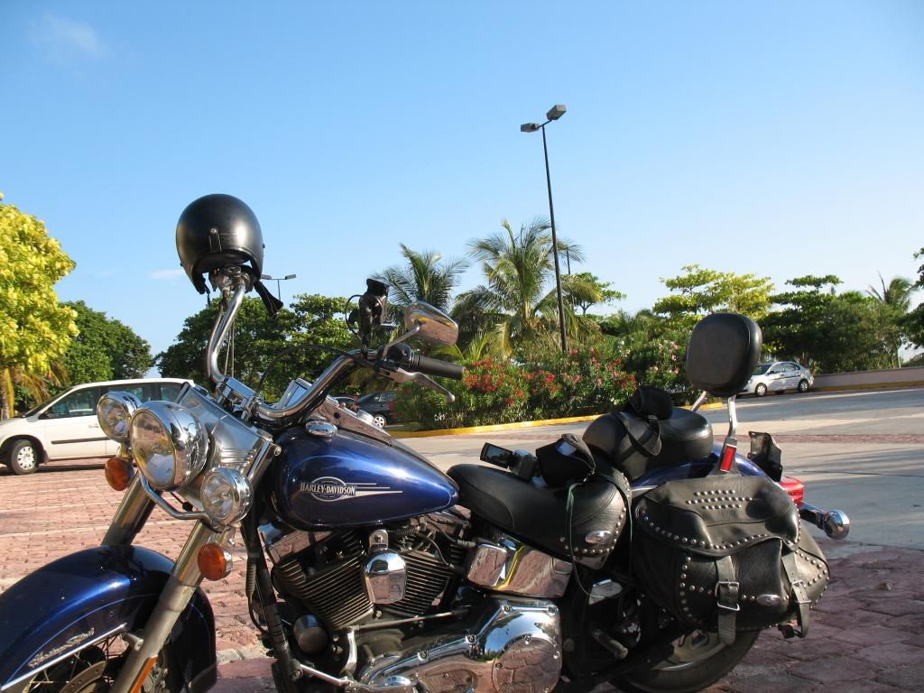 Pyörän olin varannut DG- Tours nimiseltä brittifirmalta joka nettisivujensa perusteella teki monennäköistä reissua ympäri maailmaa. Osoittautuikin sitten, että vuokraamani pyörä olikin vanha tuttu: ” *Eagleriders” jolla oli kuin olikin toimipiste Cozumelin saarella n. 100 km Cancunista etelään. Firmahan löi vuosi sitten lapun luukulle juuri neniemme edessä.