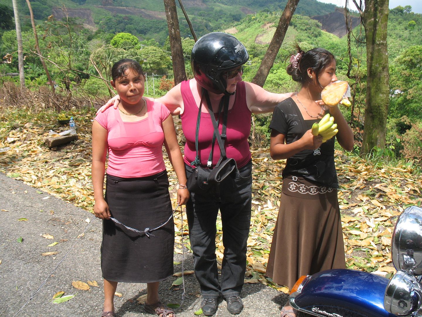 Tämä Chiapasin osavaltio on Meksikon eteläisin ja on varsin vaihtelevaa maisemaltaan. Ajelimme pitkin hienoja mutkateitä ja vuorten rinteitä. Luonto oli todella vehreää ja sää oli loistava. Liikennettä oli vähän ja pienten kylien kohdalla maya-tytöt myivät banaaneita ja muita hedelmiä matkaajille. Tytöillä oli ovela tapa kiinnittää huomio myymäläänsä. Heillä oli tien poikki vedetty lippusiiman tyyppinen naru jonka toisesta päästä tyttö piti kiinni toisen pään ollessa tien toisella puolella puussa kiinni. Ostimmepa itsekin herkullisia vastapoimittuja banaaneita jotka eivät maksaneet paljon mitään.