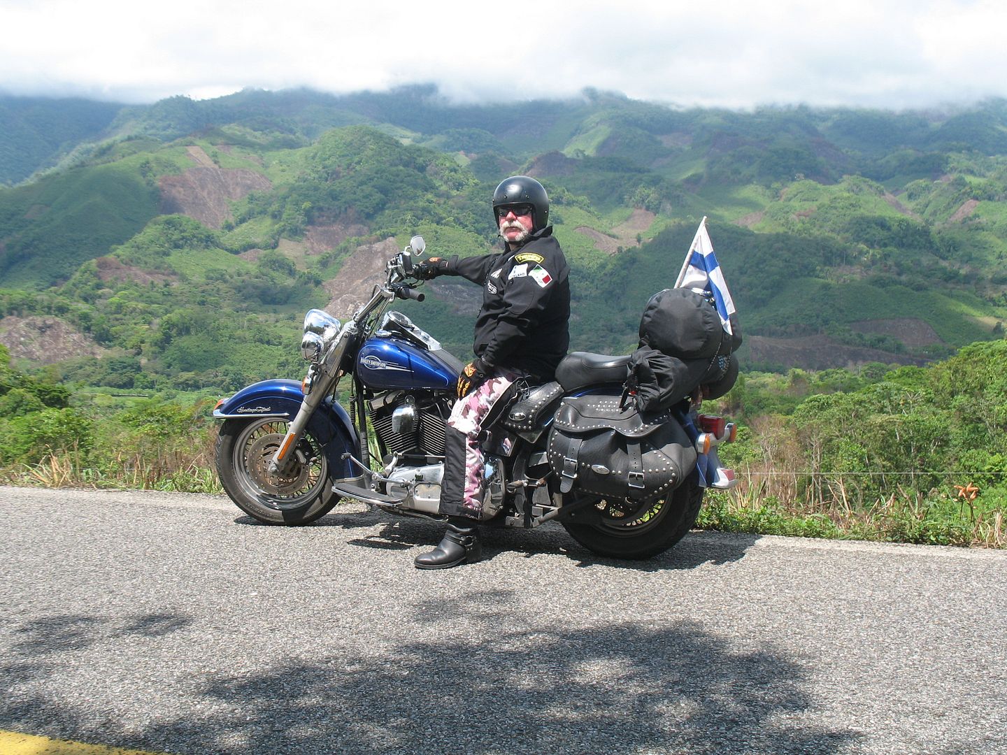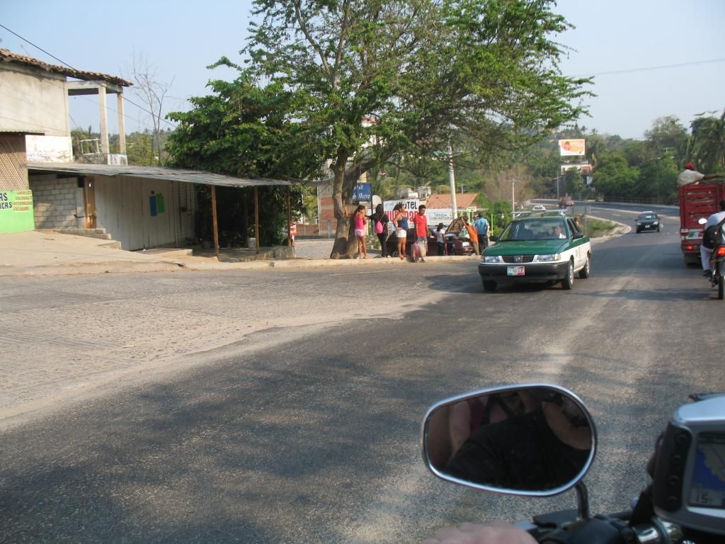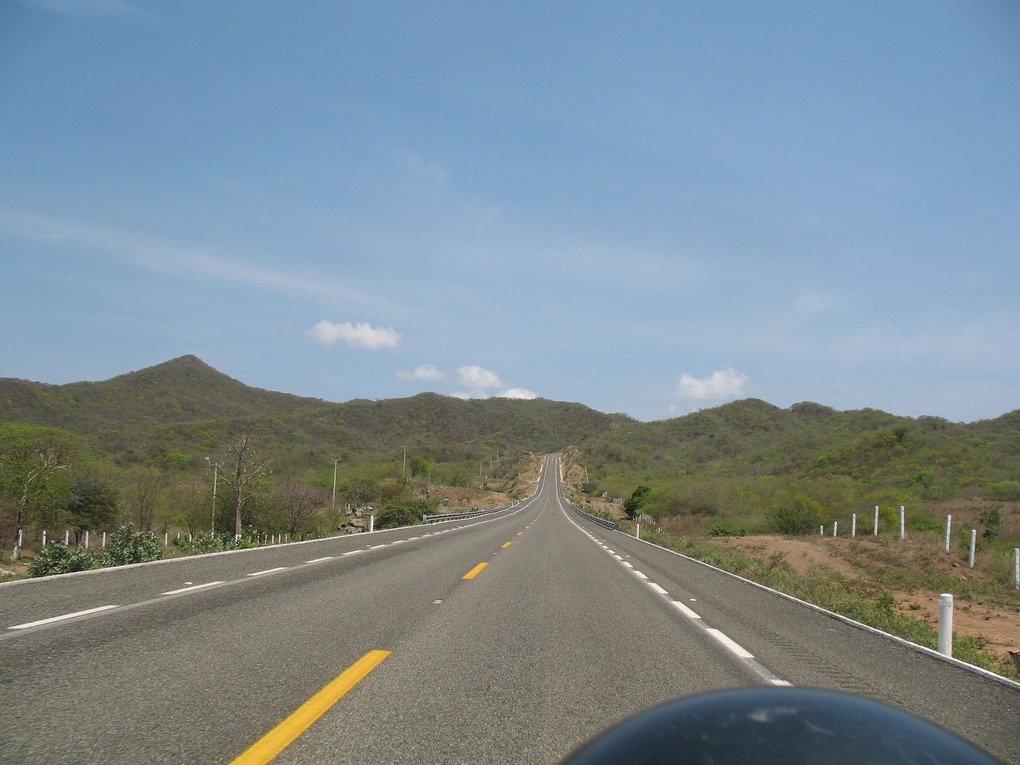Täältä päätimme vähän oikaista ja ajaa loppumatka komeasti moottoritietä. Tielle päästiin hienosti ja se oli erinomainen ja maisemat olivat upeat. Nyt alkoi ensimmäisen kerran kuitenkin pelottaa meksikaanojen ajotyyli. Ajelin sellaista 100-110 vauhtia. Kaikki autot painelivat järjestään ohi. Ei tämä mitään, mutta ensin autot roikkuivat ahterissa ja ohitus tapahtui niin, ettei auton ja pyörän välissä ollut rakoa kuin nimeksi. Lisäksi autot palasivat oikealle kaistalle heti kiilaten meikäläistä tien reunaan. Kuulin myöhemmin maassa asuvalta suomalaiselta ystävältäni että meksikolaiset eivät ole vielä tottuneet moottoripyöriin. Tämä oli melkoisen traumaattinen kokemus josta toipuminen vaati myöhemmin seurustelua señorita Margaritan kanssa.