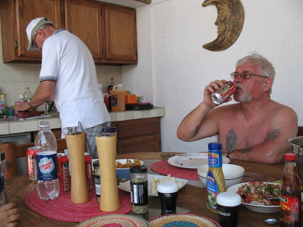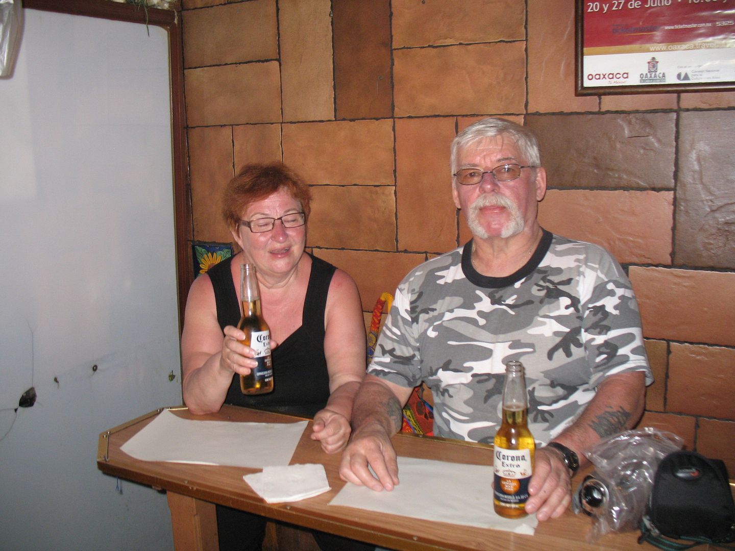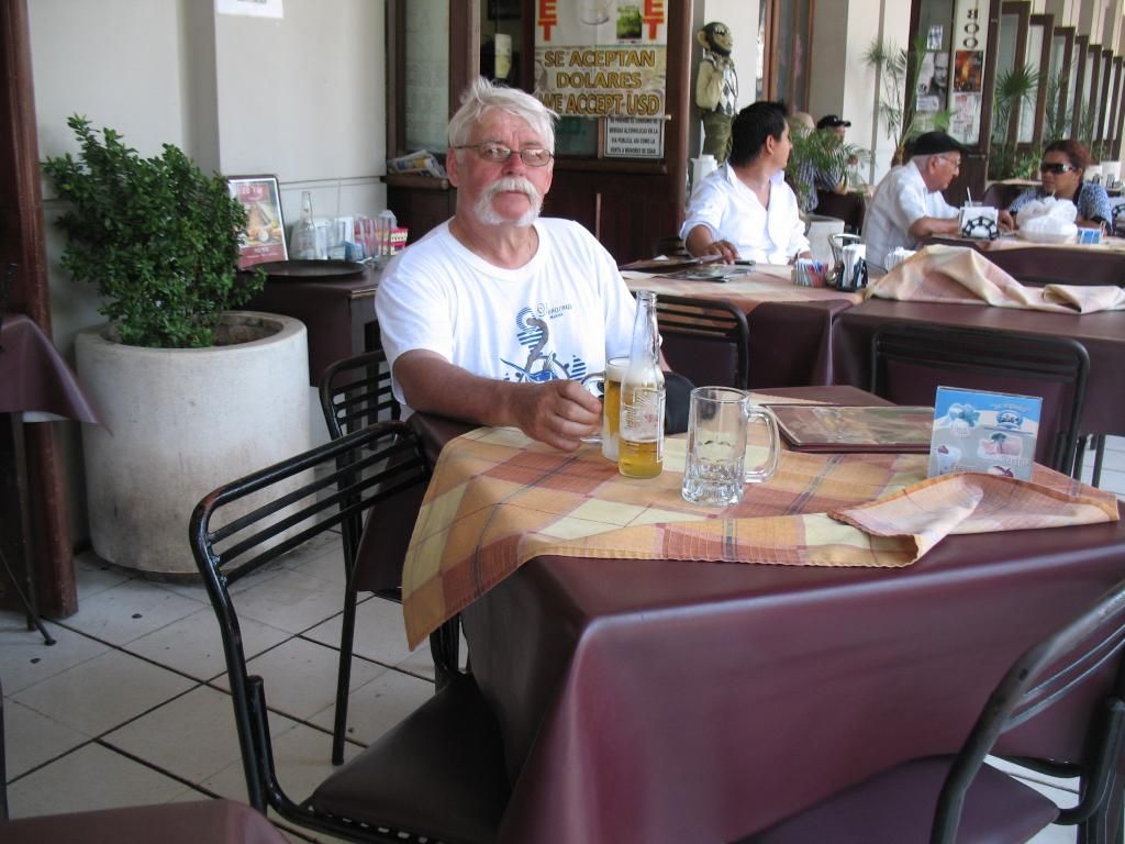 Teimme pienen kävelykierroksen kaupungilla ja palasimme hotelliin illalliselle. Koska oli lämmin ilta, tuumasimme että erinomainen meksikolainen olut olisi poikaa. Tilasin kummallekin oluet. Tarjoilija oli ammattimies ja sanoi että jos otamme 6 pulloa kerralla, niin hinta tippuisi puoleen pulloa kohti. Otin käyttöön alkoholistin laskuoppaan ja sain hetkessä tulokseksi, että mitä enemmän tätä olutta ostaa, sitä enemmän säästää. Tacot olivat erinomaisia ja olut erinomainen kyytipoika. *Vatsat Ja päät täynnä horjuimme huoneeseen toipumaan päivän rasituksista.