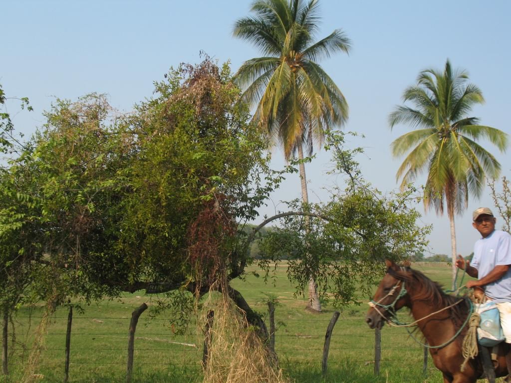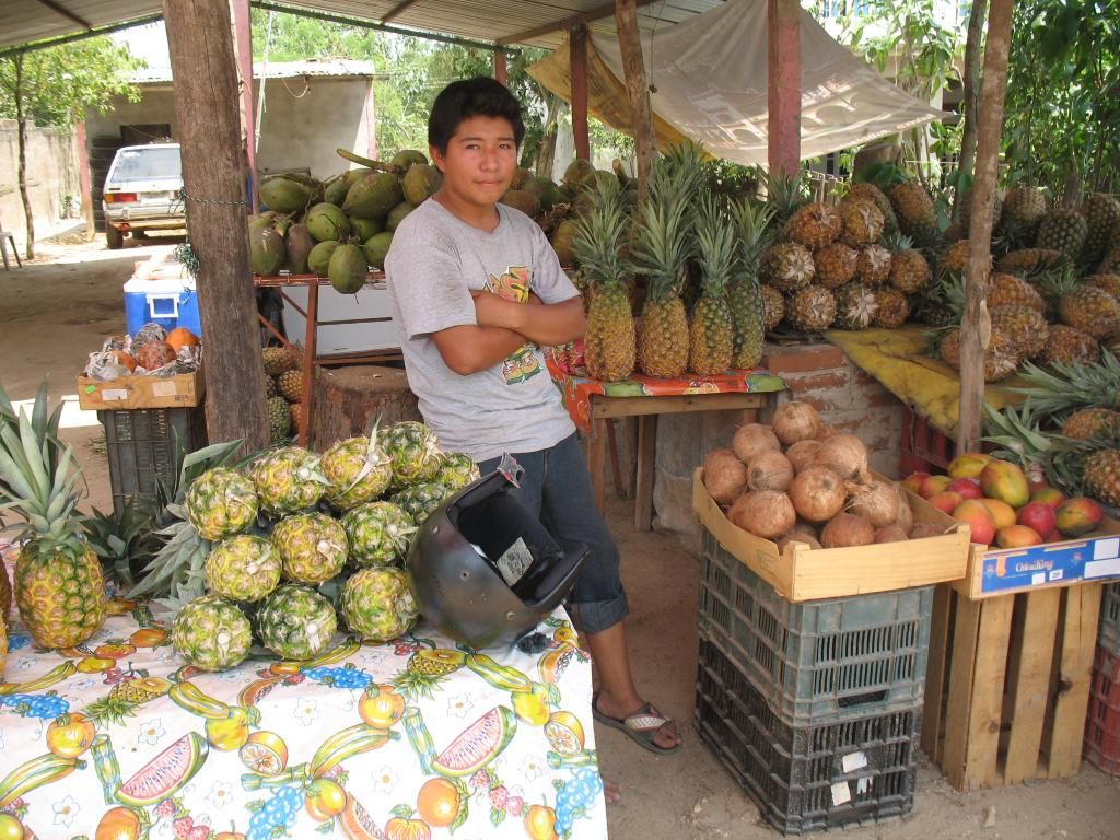 Aamulla oli vähän hutera olo mutta tukeva ja maukas aamiainen auttoi toipumaan. Pyörä oli turvallisesti hotellin sisäpihalla ja kun lähdimme pakkaamaan pyörää, jouduimme laittamaan heti kypärät päähän, sillä harrikka oli parkissa aivan hedelmiä täynnä olevan mangopuun alla ja kypsiä mangoja lätsähteli maahan jatkuvasti. Tuoreet mangot vielä aamutortillojen päälle niin olimme valmiita lähtemään kohti Salina Cruzia ja Tyyntä Valtamerta.