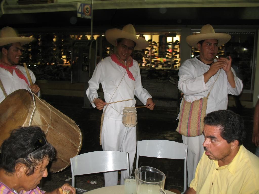 Tilasin kalaa banaaninlehdessä haudutettuna. Ruoka oli erinomaista ja nämä rouvan paistamat tuoreet tortillat olivat todella maukkaita. Siirryin sitten seuraamaan tanssiesitystä. Olikin upea kokemus. Tanssijoina oli paikallisen tanssikerhon jäseniä, osa jopa iäkkäitäkin. Ei siis mitään turistipelleilyä.
