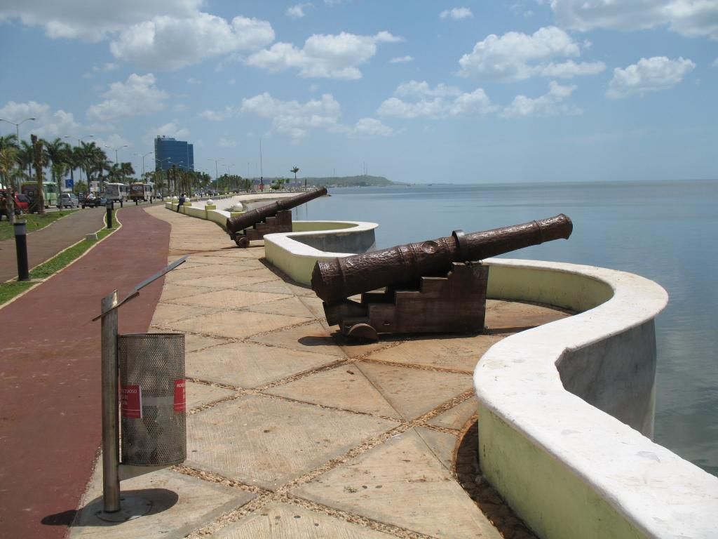 Campechen malecon joka tuhoutui pyörremyrskyssä 1990-luvulla. Tykit sentään kestivät