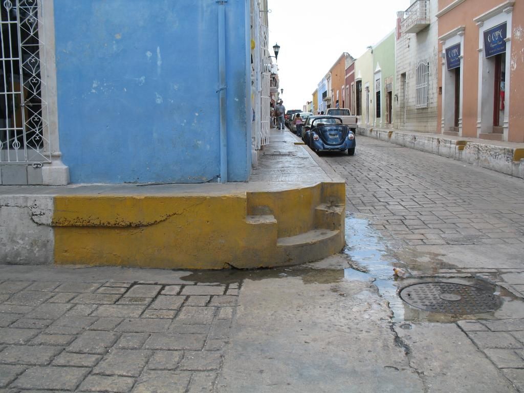 Melko korkea jalkakäytävä. Nähtävästi rankkasateiden takia. Ei huonojalkaisille. Campeche