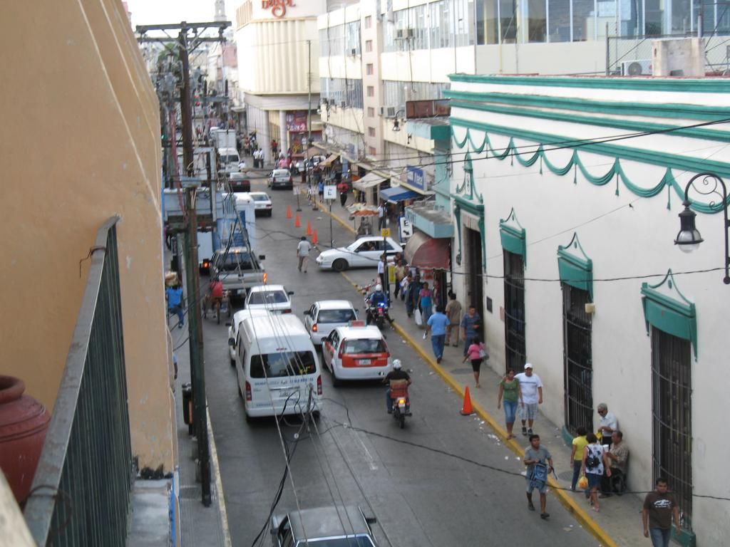 Saavuin kaupunkiin ja liikenteen vilske oli melkoinen. Löysin onneksi helposti keskustaan. Kun tuo nuukuus on suvussa, otin halvan hotellin aivan zocálon läheltä. Ilmastoitu huone maksoi ainoastaan 200 pesoa yö. Pyörän sain myös hotellin parkkiin. Maksettuani etukäteen huoneen, portsari antoi minulle samankokoisen ja näköisen pyyhkeenriekaleen kun Omar oli antanut meille Cozumelilla säkin ja rekisterikilven väliin. Kiipesin sitten huoneeseen. Luolahan se oli. Ilmastointikone piti varsinaista jytinää puhaltaen viiman suoraan vuoteeseen. Pikkuisen harmitti, mutta en viitsinyt ruveta vaihtamaan hotellia. Eiköhän tässä yö pärjätä, tuumin ja yritin löytää asiasta positiivisia piirteitä. Sellainen oli ainakin, että minulla oli parveke suoraan katunäköalalla.