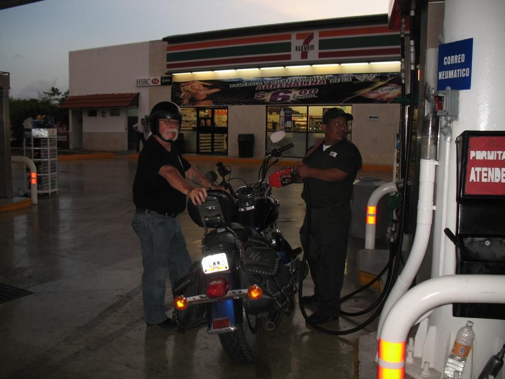 Valitsemallani mittarilla oli nuori poika joka rupesi täyttämään tankkia. En katsonut tarkkaan mittaria kun käänsin tankin korkin kiinni. Mittarille oli ilmestynyt toinen poika joka painoi jotakin nappia. Mittariin ilmestyi hinta 150 pesoa tasan. Olin jo tankannut täällä sen verran että tiesin hinnan pyörivän 80-110 peson välissä riippuen miten sitä bensaa mahtui. Koskaan ei myöskään tullut tasapesoja. Mittarissa ei ollut litramäärääkään. Kusetus ei ollut iso, ja maksoin sen mutta kyrsiihän se kun huijataan.