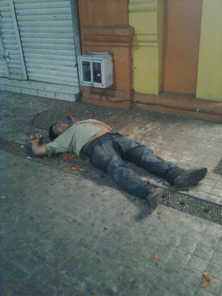 Uni alkoi painaa joten siirryin hotelliin jonka edustalla nautin hetkisen paikallisen Marimbayhtyeen musiikista. Oli varsin lämmintä ja painostavaa, ennustellen ukkosta. Eipä aikaakaan kun ensimmäiset jyrähdykset kaikuivat ja valtava sadekuuro kasteli kadut ja siellä kulkijat. Marimbansoittajat eivät hätkähtäneet. Soitin siirrettiin katoksen alle ja musiikki jatkui. Ukonilma oli rankka. Taivas oli salamoista aivan valkoisena ja jyminä helvetillinen