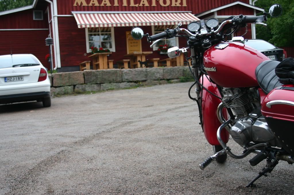 Eilen ei kehdannu mennä kun ne autoliiton ukot päivysti siinä risteyksessä... tänään kun oli vähempi porukkaa kävin pyörimässä mut yllätys oli suuri kun ei tuota löytynykkään, prkle pitäiskö siitä muka jatkaa siitä missä se pintatie päättyy? eihän se nyt käy... mopo voi likaantua...