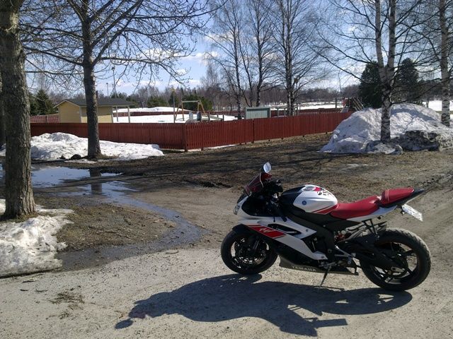Jokohan tämä ketju herää kohta talvihorroksesta, Tupasvillan pihalla näin tänään jo yhden kaksirattaisen...