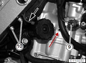 Hetken kateltua löysin vuotopaikan. Moottorin oikealla puolella, tulpan alapuolella ja nestejärjestelmän ilmauspropun takapuolella on reikä kannessa??? Mitä virkaa se toimittaa?