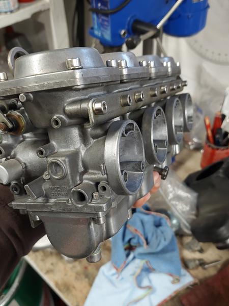 Kaasuttimet olivat seuraavina menossa takaisin omille paikoilleen, mutta ei ilman perusteellista läpikäyntiä. Olin tyhjentänyt kaasuttimet parhaani mukaan ennen hyllyttämistä, mutta silti yhden kohokammion pohjalta löytyi erittäin tahmaista bensajäämää. Uskomattoman tiukaksi mämmiksi nykybensa osaakin mennä seisoessaan ja kuivuessaan, siihen ei esimerkiksi Brakleen pure lainkaan. Motonetista löytyvä Shot- teholiuotin sen sijaan suorastaan lennätti jämät irti, mutta tuota ei kyllä sisätiloissa kärsi käyttää yhtään ilman kunnon naamaria. Jokatapauksessa, löydös johti kaasuttimien purkuun, sekä osien ultraäänipesuun. Tarkastin kaasuttimien kalvot erittäin tarkasti halkeamien varalta, mutta niitä ei onneksi löytynyt. Vaihdoin varmuuden vuoksi kaikki o-renkaat uusiin vanhojen tunnuttua melko kovettuneilta.