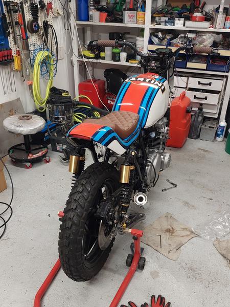 Vihdoin voidaan julkistaa väritys! Eli oma all-time favourite, Martini Racing. Logo jäi vielä uupumaan tankista, mutta laitetaan se myöhemmin. Lopputulos on juuri sellainen kuin sen itse kuvittelinkin. Pienempiä tarroja tulee vielä lisäksi, mutta keskitytään niihin tuonnempana..